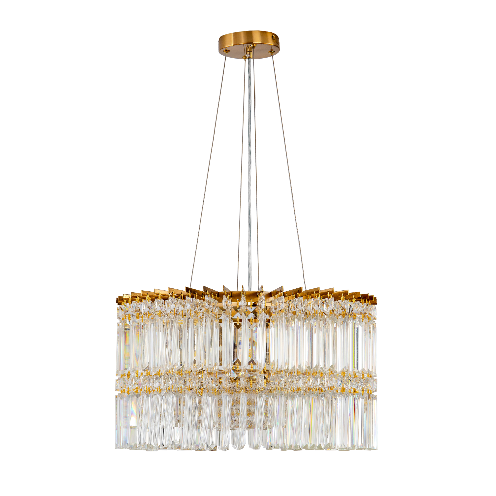 Подвесная люстра изготовлен из таких материалов как: Сталь, хрусталь. При окраске наших изделий используется порошковая краска, которая не имеет запаха так как технологи окраски осуществляются в печах для запекания при высокой температуре. Все элементы металлического цвета окрашиваются гальваническим способом и покрываются защитным слоем прозрачного лака.