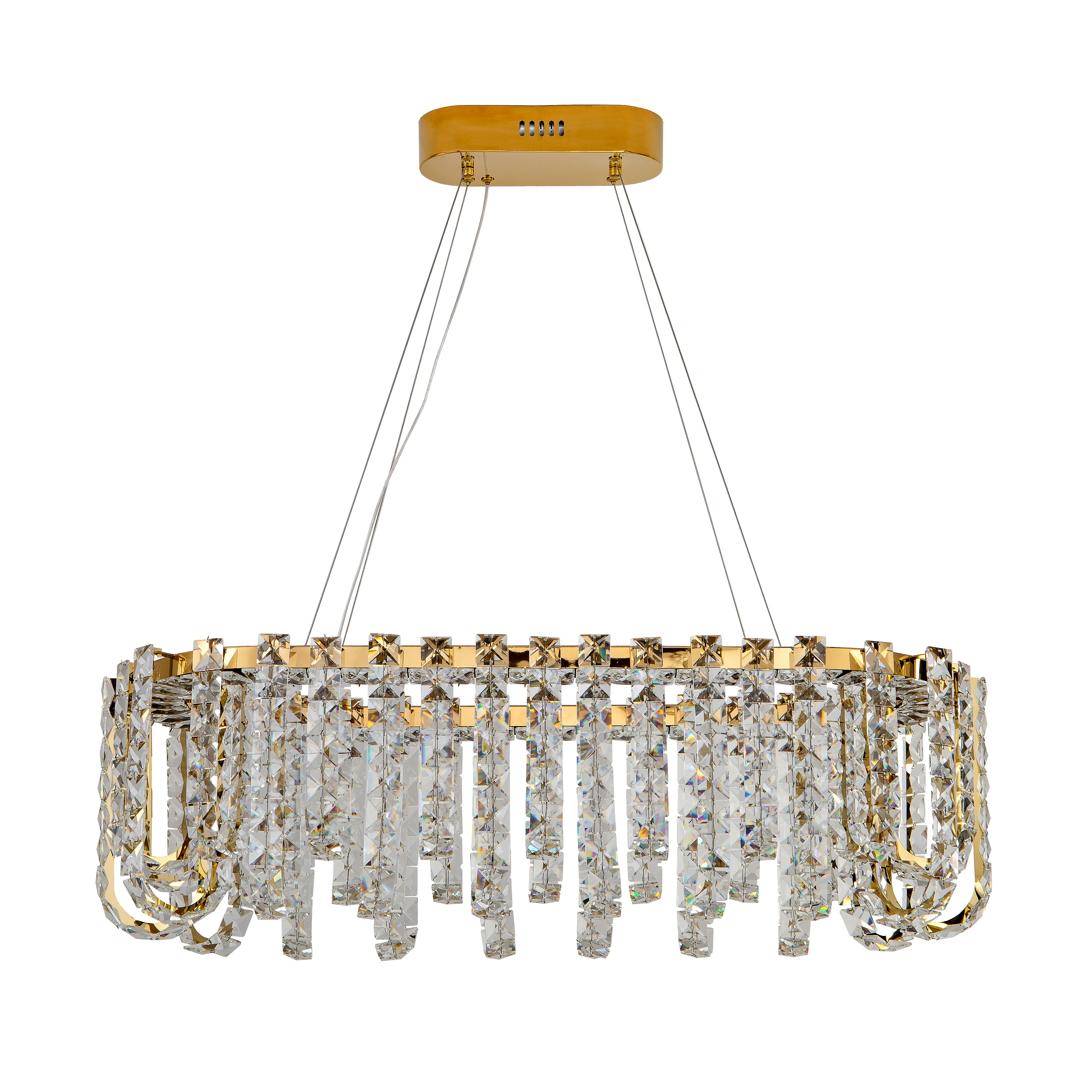 Изделие: Подвесная люстра Арт.: ZRS.30514.23, Мощность/Лампа: 30Вт/LED, Световая температура: 3000К-6000К, Напряжение: 180в-240в, Коллекция: Amanda, Цвет: Золото, Материал: сталь нержавеющая, сталь, хрусталь, Бренд: ZORTES, Размеры в миллиметрах: Ширина/Диаметр-850/350мм, Максимальная регулируемая высота: 1200мм, Площадь освещения-12квм, Cтиль: Модерн, неоклассика, Помещение: Спальня, Кухня, Детская, Холл, Коридор, Столовая, Лоджия, Мансарда ,Гардеробная, Кладовая, Веранда, Санузел. Световой поток в люменах-1900. Гарантия 2года.