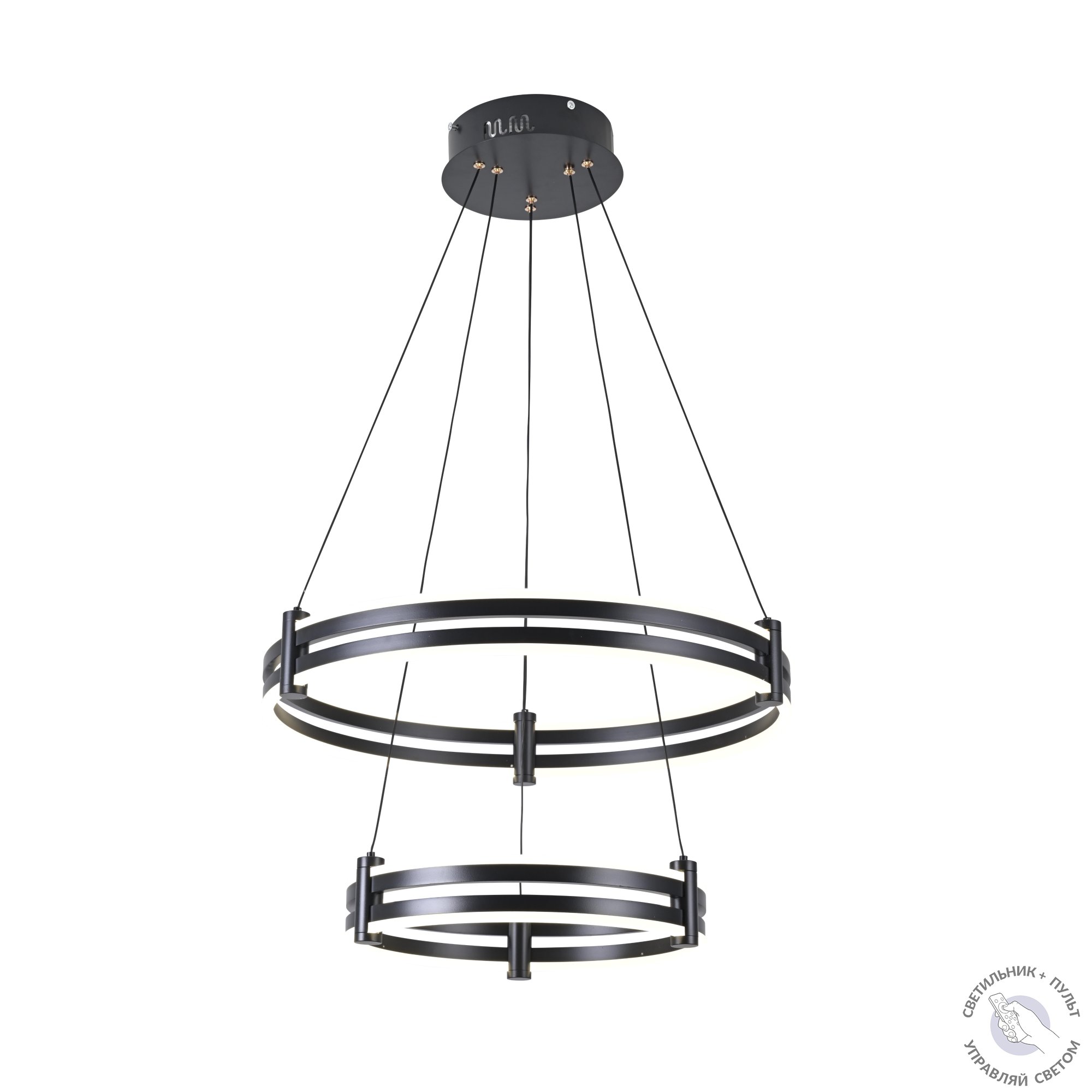 Изделие: Подвесной светильник Арт.: ZRS.30514.09, Мощность/Лампа: /LED, Световая температура: 3000K-6000K, Напряжение: 180в-240в, Коллекция: DUBLE-R, Цвет: Чёрный, Материал: Алюминий, сталь, акрил , Бренд: ZORTES, Размеры в миллиметрах: Ширина/Диаметр-Ø400мм+600мм
