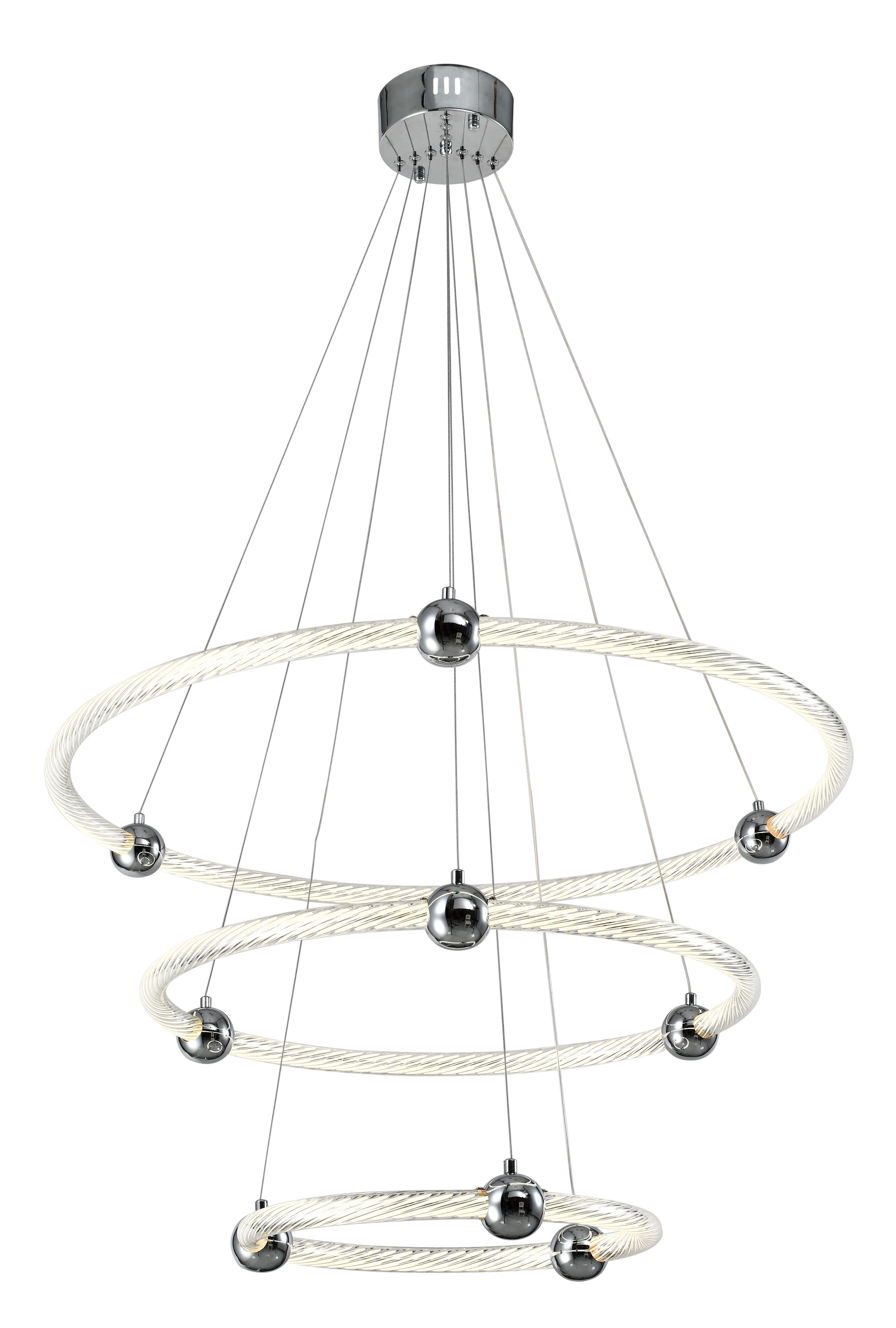 Люстра изготовлена из таких материалов как: Сталь; Акрил. Также используется порошковая краска, которая не имеет запаха так как технологи окраски осуществляются в печах для запекания полимерной основы краски. Все элементы металлического цвета окрашиваются гальваническим способом и покрываются защитным слоем прозрачного лака. Изделие: Подвесной Свнетильник, Арт.: ZRS.57791.171, Мощность: 171W, Напряжение: 185В-245В, Коллекция: AURALIA, Цвет: Хром, Материал: Сталь; Акрил, Бренд: ZORTES, Размеры в СМ: Диаметр-ø80/60/40, Максимальная высота-150, Угол рассевания:140-160, Площадь освещения: 54,72квм, Cтиль: Модерн, Неоклассика, Помещение: Зал, Холл, Спальня, Столовая, Кухня, Кабинет, Мансарда, Веранда. Световой поток в люминах-17100. Гарантия 2года