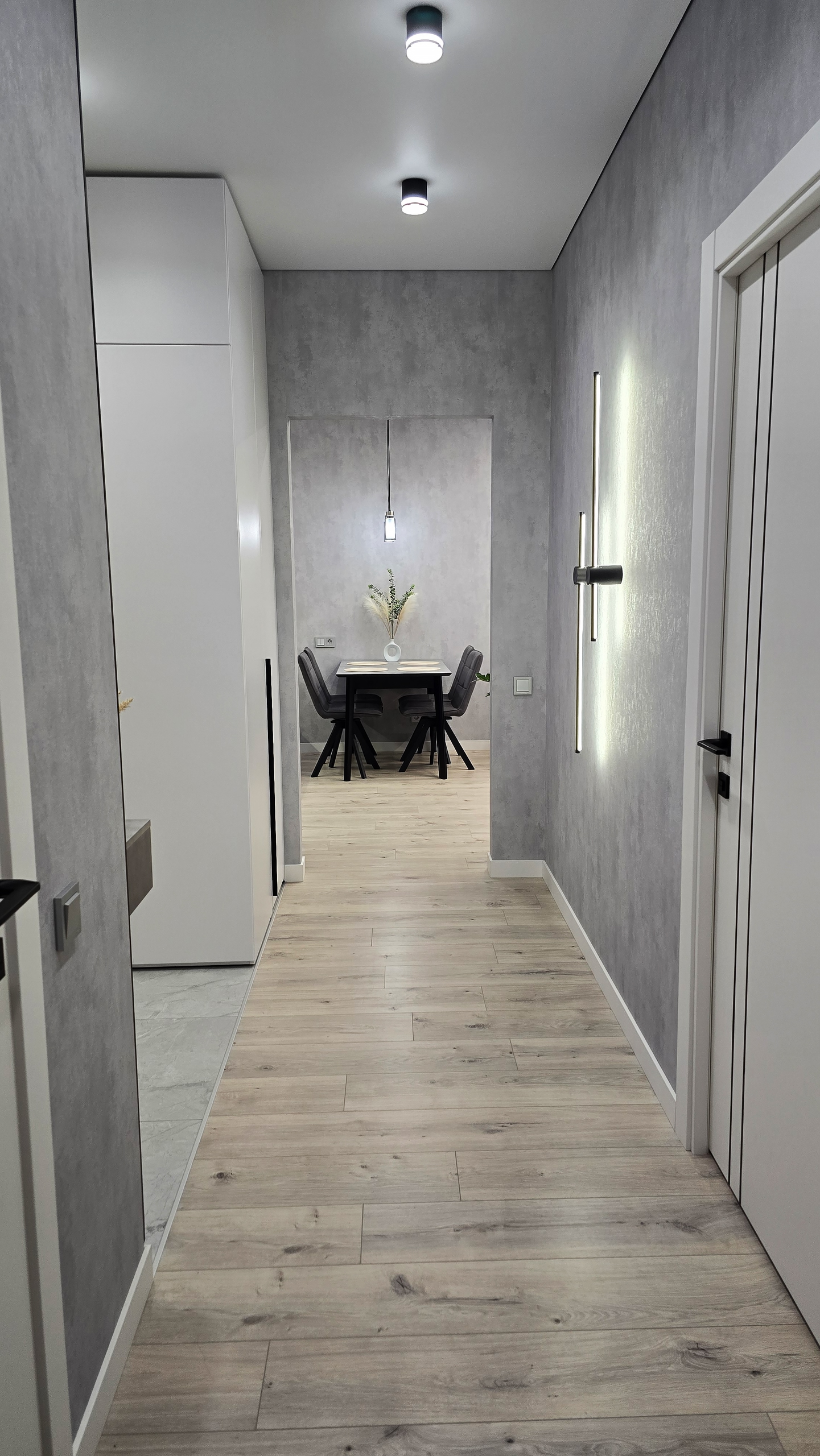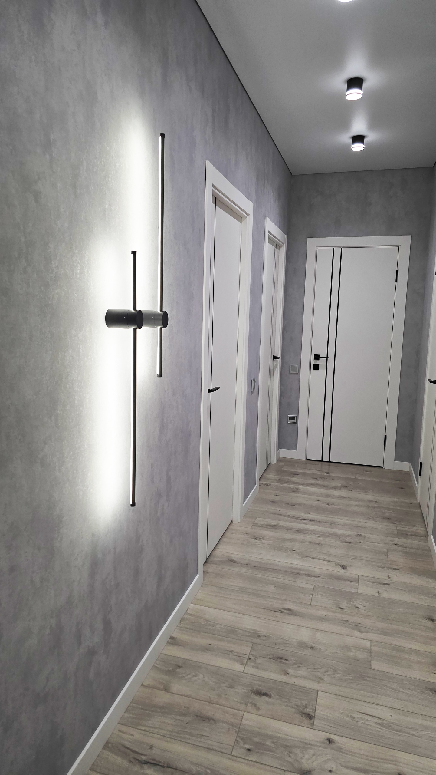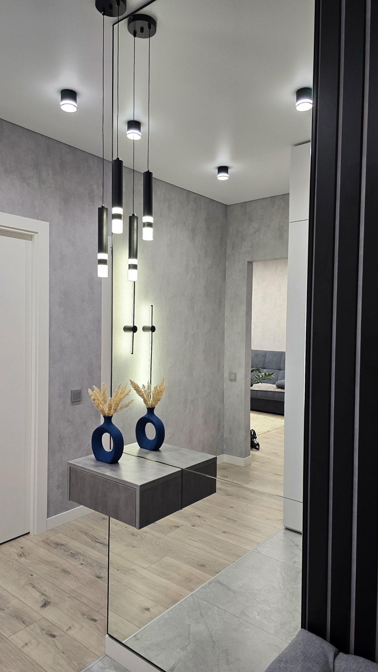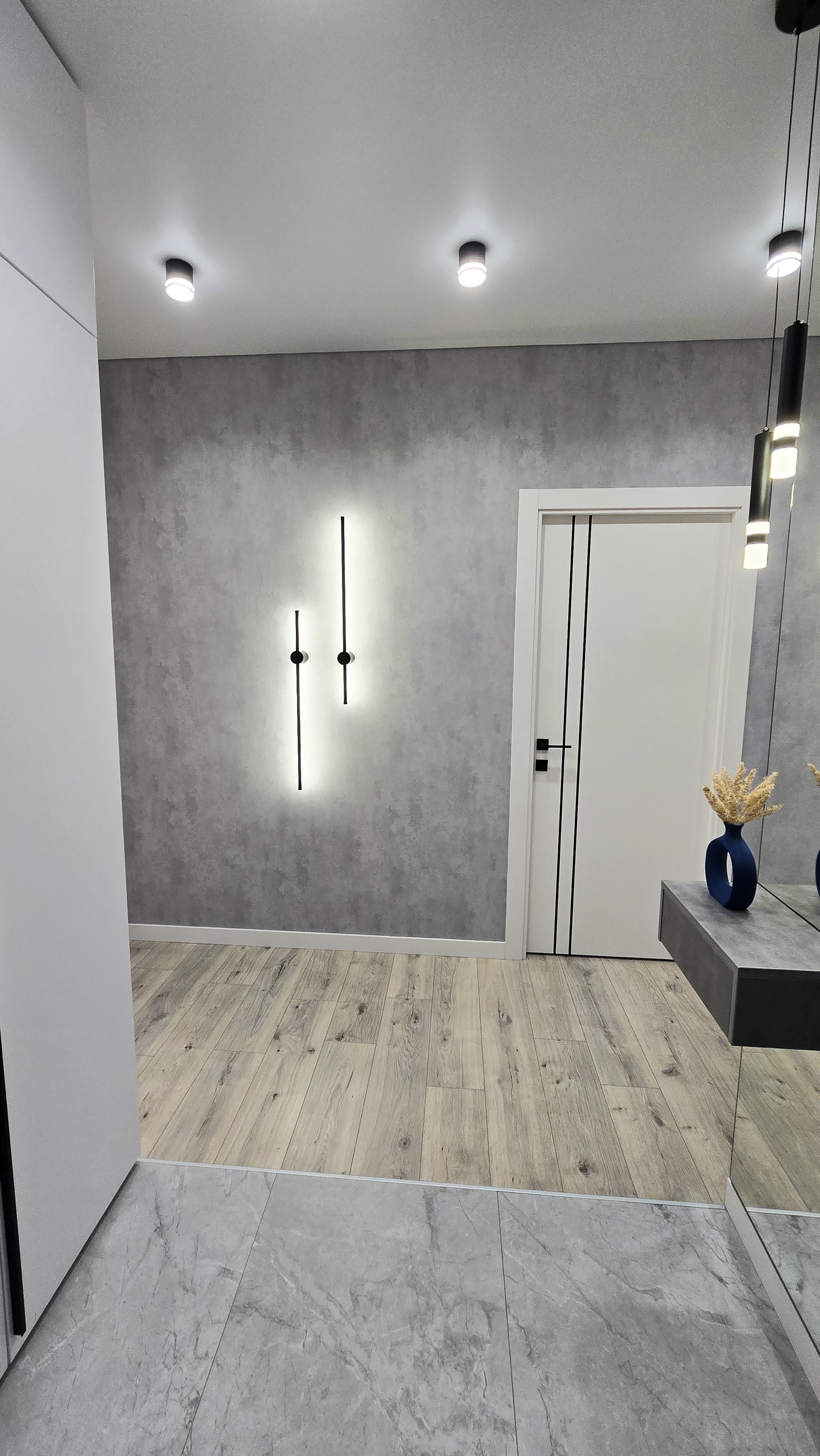 В результате получилась прихожая, где свет не просто освещает, а рассказывает историю. Историю о том, как две черные линии на стене могут изменить восприятие пространства.